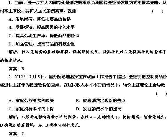 百度:2013高一政治必修1教师用书:应用创新演练(含解析)第一单元 第三课 第一框 消费及其类型