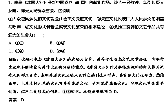 2013高二政治必修3教师用书:应用创新演练 第四单元 第九课 第一框 坚持选进文化的前进方向