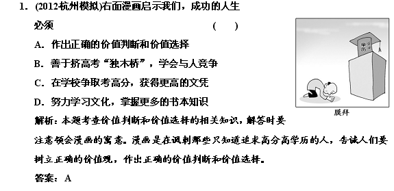 有道:2013高二政治必修4教师用书:应用创新演练(含解析) 第四单元 第十二课 第二框 价值判断与价值选择