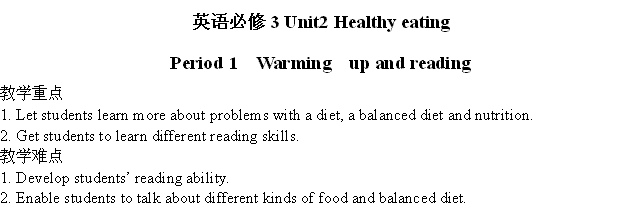 有道:2012高一英语教案:Unit 2 Healthy eating(1)(新人教版必修3)