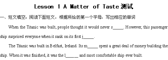 2012高一英语同步测试:unit6 lesson1 a matter of taste(北师大版必修2)