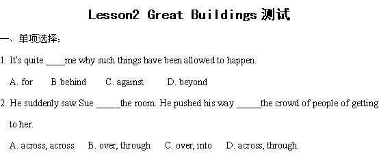 百度:2012高一英语同步测试:Unit6 lesson2 Great buildings(北师大版必修2)