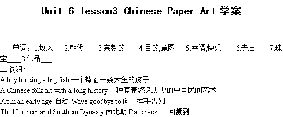 2012高一英语精品学案:unit6 lesson3 chinese paper art(北师大版必修2)