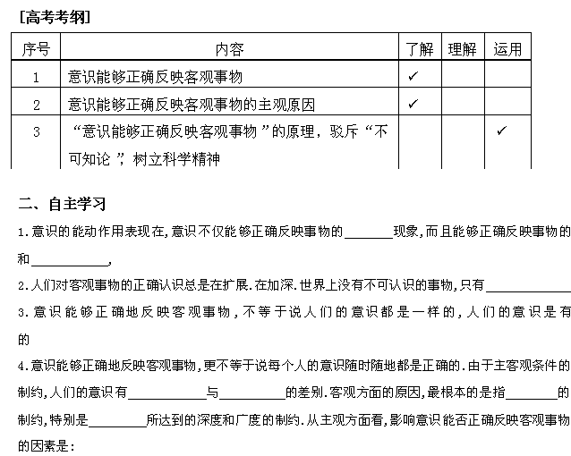 有道:广西平南县中学高二政治 1.2.2意识能够正确地反映客观事物 学案