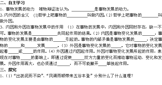 有道:广西平南县中学高二政治 第一节(一)矛盾在事物发展中的作用 学案