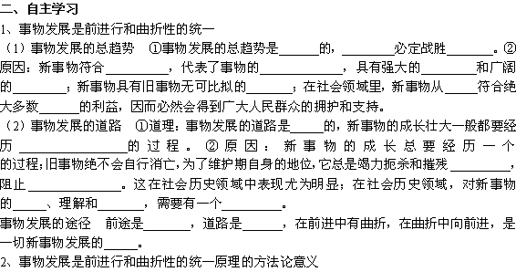 百度:广西平南县中学高二政治 第三节(一)事物发展是前进行与曲折性的统一 学案
