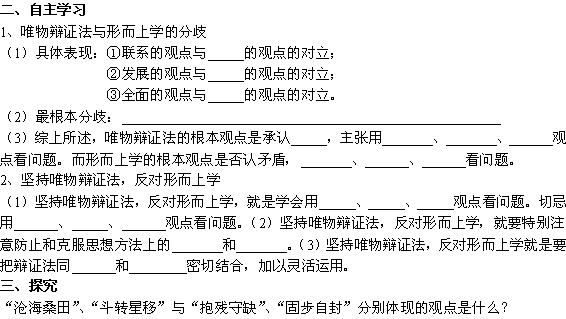 百度:广西平南县中学高二政治 第三节(二)坚持唯物辩证法 反对形而上学 学案