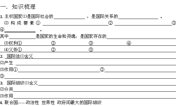 广西平南县中学高三政治(教学案22) 主权国家和国际组织