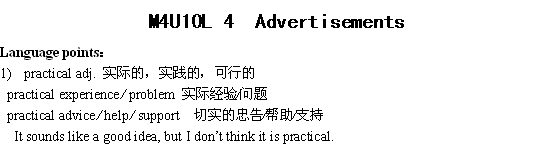 2012高一英语精品学案:unit10 lesson4 advertisements(北师大版必修4)