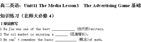 百度:2012高二英语同步练习:Unit11 The Media Lesson3 The Advertising Game(北师大必修4)