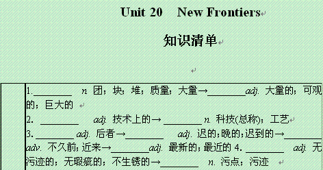 谷歌:2012高二英语导学案:Unit 20 New Frontiers(北师大版选修7)