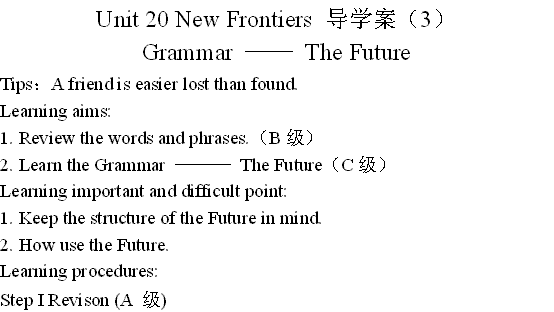 有道:2012高二英语导学案:Unit20(3)(北师大版选修7)