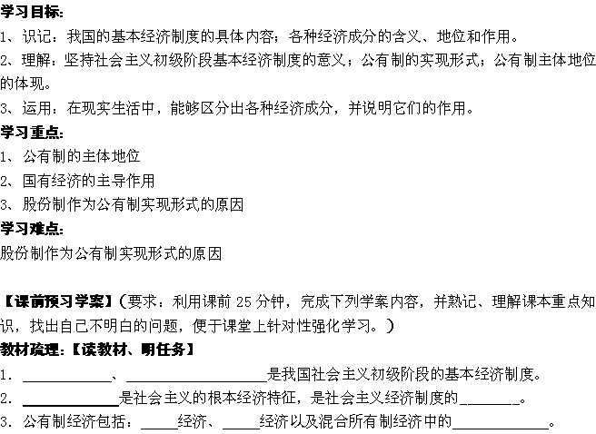 谷歌:浙江省临海市白云高级中学高一政治《4-2我国的基本经济制度》导学案