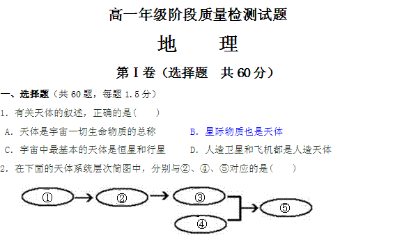 百度:山东省临沂市临沭县实验中学2012-2013学年高一上学期期中考试地理试题