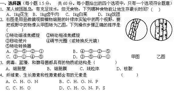 谷歌:《KS5U首发》湖北省孝感高级中学12 -13学年高一上学期期中考试(生物)