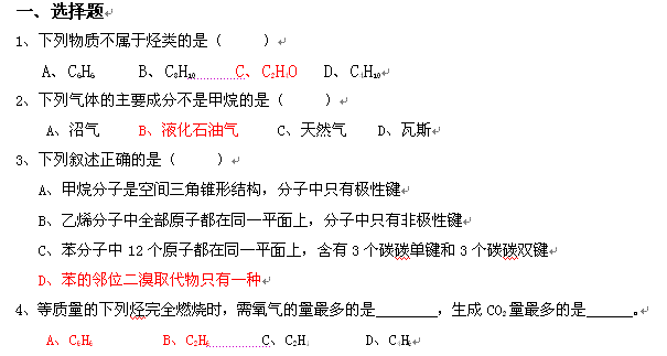 谷歌:广东省佛山市南海区罗村高级中学高一化学《烷烃、烯烃、苯、乙醇》练习
