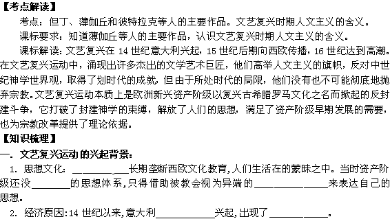 谷歌:岳麓版历史必修三 学案+课时训练 第12课 文艺复兴巨匠的人文风采