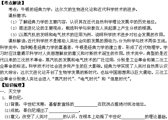 百度:岳麓版历史必修三 学案+课时训练 第15课 近代科学技术革命
