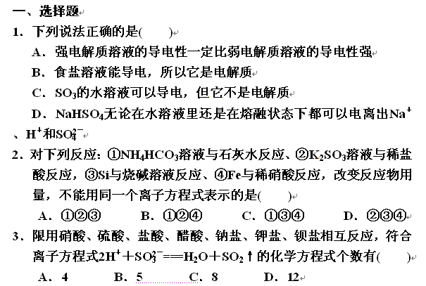 百度:广东省佛山市禅城实验高级中学高三化学《离子反应的氧化还原反应》复习练习
