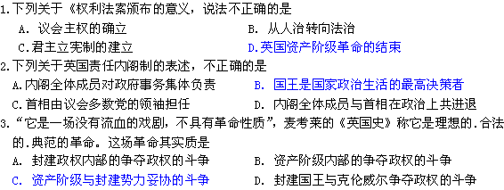 有道:山东省2013届高三历史一轮复习单元测试:必修一第三单元:近代西方资本主义政体的建立(3-1)(岳麓版)