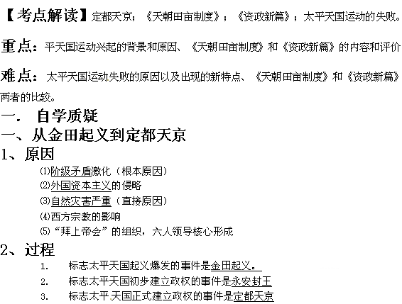有道:人民版高一历史必修一 专题三 第1课 太平天国运动 教案