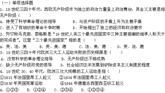百度:人民版高中历史必修一 专题八 第1课 马克思主义的诞生 试题