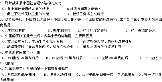 百度:人民版高中历史必修二 专题二 近代中国资本主义的曲折发展 检测 试题