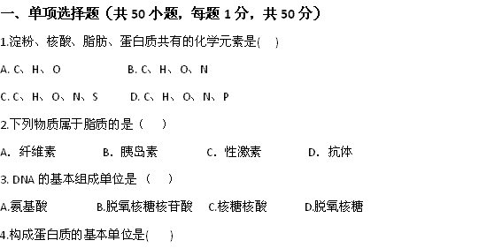 百度:河北省卢龙县木井中学2011-2012学年高一上学期期中考试生物试题