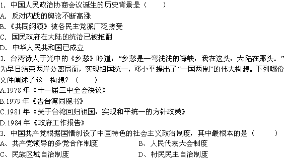 百度:河北省衡水中学2013届高三历史一轮复习专项检测(含解析):专题4 现代中国的政治建设与祖国统一专题训练(人民版必修1)