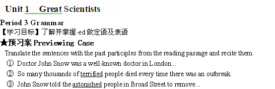 谷歌:广东惠州市惠阳一中实验学校高二英语学案:Unit1 Great scientists-Grammar(新人教版必修5)