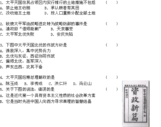 百度:四川省德阳五中高一历史 专题三《第一课 太平天国运动》素质提升