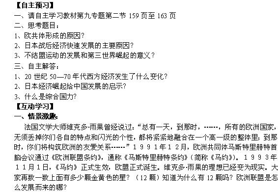 有道:四川省德阳五中高一历史 专题九《第二课 新兴力量的崛起》教案