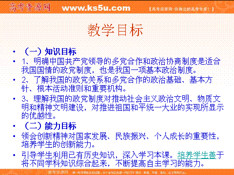 有道:2013学年高一政治精品课件:3.6.3《共产党领导的多党合作和政治协商制度:中国特色的政党制度》(新人教必修2)