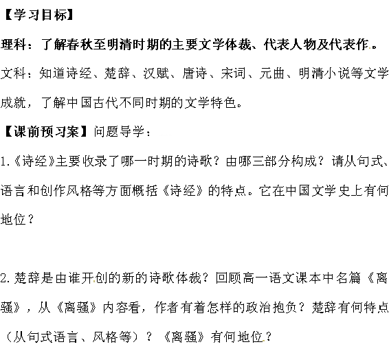 有道:人民版高中历史文化史 专题二 第3课 中国古典文学的时代特色 学案2