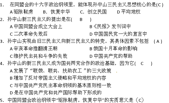 百度:人民版高中历史文化史 专题四 第1课 孙中山的三民主义 试题