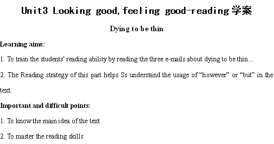 有道:高一英语精品学案:Unit3 Looking good,feeling good-reading(牛津译林版必修1)