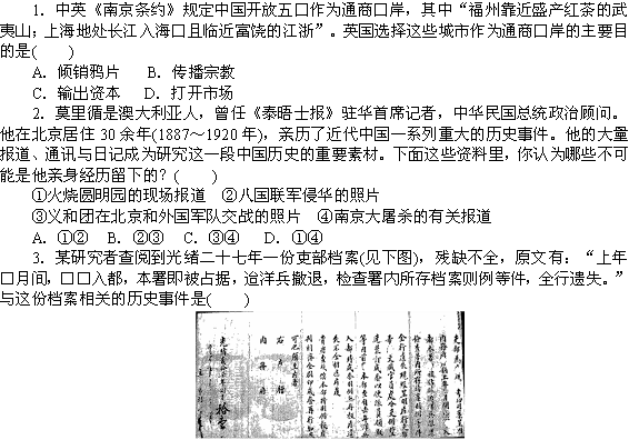 百度:2015届江苏省高一历史专题检测《专题二自主检测》(含详解)