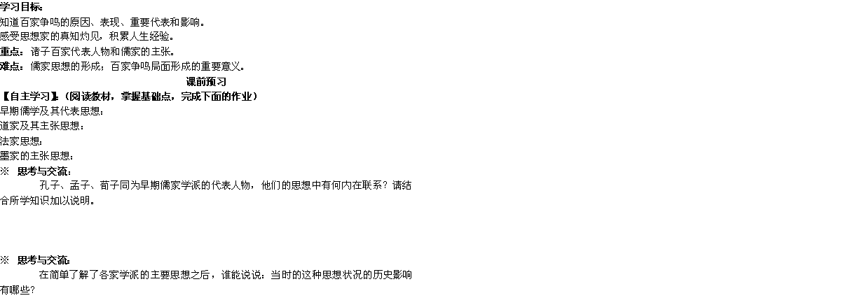有道:人民版高二历史必修三 导学案 专题一 百家争鸣