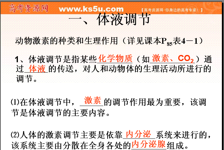 有道:2011-2012学年云南省弥勒县庆来中学高一生物课件:必修3 人和高等动物的体液调节(人教版必修三)