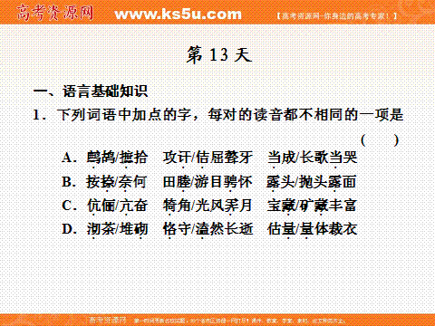 有道:2012年步步高语文大二轮专题复习课件: 热身训练半个月 第13天