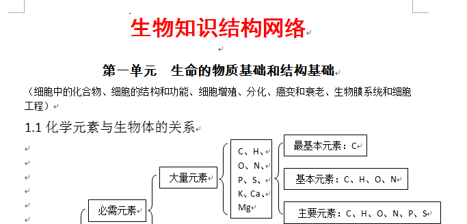谷歌:2012高考生物二轮复习:生物知识结构网络(一)