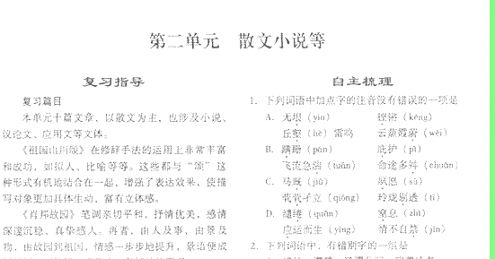 谷歌:潍坊市2012高考语文一轮复习练: 第二单元 散文小说等学案(扫描版) 苏教版必修3