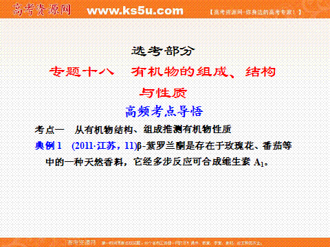 有道:2012届步步高高考化学考前三个月专题复习课件:专题18 有机物的组成、结构与性质