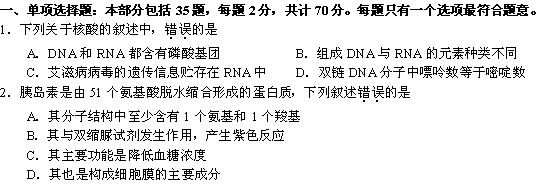 百度:2012年江苏省扬州市高二学业水平测试模拟试卷(1)(生物)