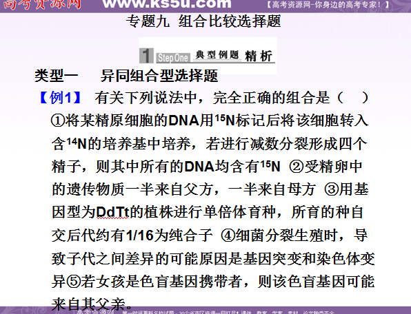 谷歌:2012高考生物二轮复习各类型题解题技巧:专题九 组合比较选择题