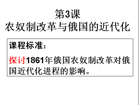 百度:2012高二新人教历史教案+课件:7-3《农奴制改革与俄国的近代化》(选修1)