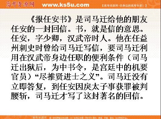 百度:2012届高二语文同步备课课件:3.1.1《报任安书节选》(苏教版必修5)