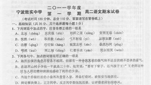 百度:浙江省宁波效实中学2011-2012学年高二上学期期末考试语文试题(扫描版)
