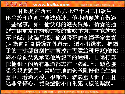 有道:2012届高二语文同步备课课件:2.8《甘地被刺》(粤教版必修5)