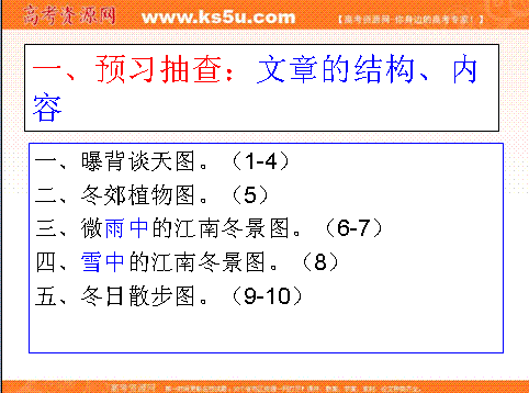 有道:2012届高一语文同步备课课件:4.1《江南的冬景》(苏教版必修1)